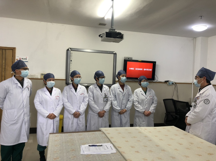 “生命重于泰山,疫情就是命令,防控就是責(zé)任。在這場(chǎng)沒有硝煙的戰(zhàn)爭(zhēng)面前,共產(chǎn)黨員沖在第一線……”徐天才書記宣布成立分院應(yīng)急病區(qū)臨時(shí)黨支部!