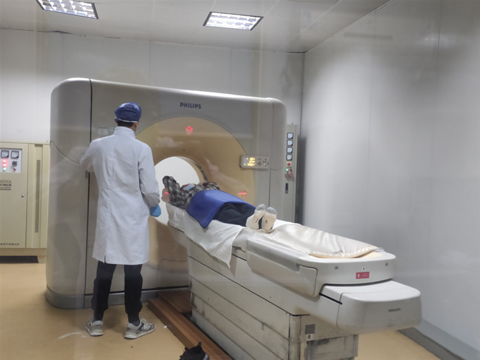 技術(shù)組組長何小龍在浮石院區(qū)機房為患者做CT檢查
