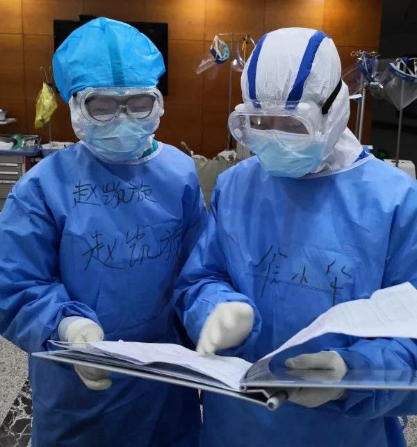 2月18日,援助武漢的第24天,趙凱旋和同在19樓的醫(yī)護(hù)人員“腦洞大開(kāi)”,紛紛把想吃的寫在了防護(hù)服上。東坡肉、羊肉泡饃、胡辣湯……形形色色的家鄉(xiāng)風(fēng)味成了防護(hù)服上一道獨(dú)特的風(fēng)景。來(lái)自我們大衢州的趙凱旋,把衢州特色美食“三頭一掌”寫在防護(hù)服前面。寫的是美食,寄托的是對(duì)家鄉(xiāng)的想念。