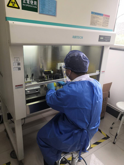 張敏波通過(guò)安全柜,為標(biāo)本統(tǒng)一裝箱