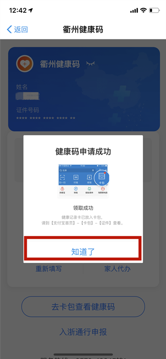 5、生成相應(yīng)顏色的衢州健康碼