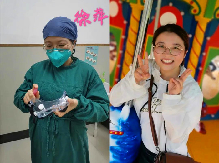 90后,腎內科醫(yī)生。工作中雷厲風行,照顧病人耐心細致,小小的身軀,蘊含著大大的能量。有一天凌晨收治病人,一直忙到三點多,才進值班室休息,第二天臉色蒼白,細問才知道她來了生理期,但這弱小的身軀依然穿著不透風的防護服在病房奔忙。從開科當日接診第一例確診患者,防護服、口罩、護目鏡、面屏下費力的呼吸;額頭、臉頰、鼻梁被勒緊到緊咬的牙關;一次次洗手后皸裂脫皮的雙手;滿屏汗水的護目鏡模糊到只能緩慢挪步的雙腿…大年初二至今,數(shù)十個日日夜夜,是這個溫暖的大家庭、親密的戰(zhàn)友們給了她力量。分別在即,舍不得這個有愛的團隊,愿疫情早日結束,相約欣賞這春日里的美好!