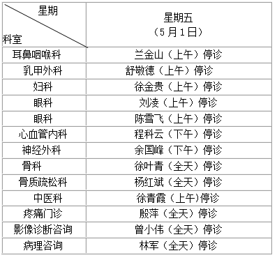 3、5月1日靜脈護(hù)理??崎T診下午停診。