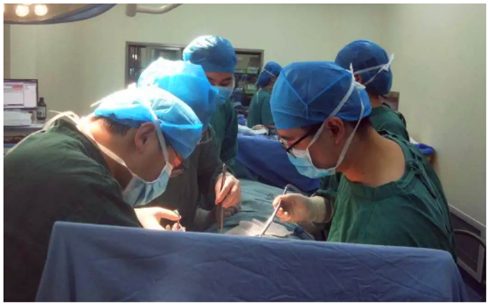 一個(gè)小時(shí)后抵達(dá)當(dāng)?shù)蒯t(yī)院,術(shù)前準(zhǔn)備一應(yīng)俱全,為范大伯重建腋靜脈血管止血迫在眉睫,一場(chǎng)“腋靜脈取栓+血管吻合術(shù)”在無(wú)影燈下進(jìn)行。手術(shù)臺(tái)上,所有人屏氣凝神,只有手術(shù)器械交相碰撞的聲音。“腋靜脈取栓時(shí)注意判斷栓塞血管是否打通”“血管吻合是個(gè)精細(xì)活,一絲一毫都要小心翼翼” “早期止血和血管重建非常重要”陸煒一邊實(shí)施手術(shù)一邊帶教指導(dǎo),在陸煒的帶領(lǐng)下,五十分鐘后,診療團(tuán)隊(duì)順利完成“腋靜脈取栓+血管吻合術(shù)”,患者出血徹底止住,休克癥狀得到改善,救治成功,所有人都松了一口氣。