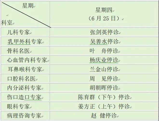 2.(6月25日)營養(yǎng)科普通門診 (下午)停診,腎內(nèi)科普通門診(上午)停診。