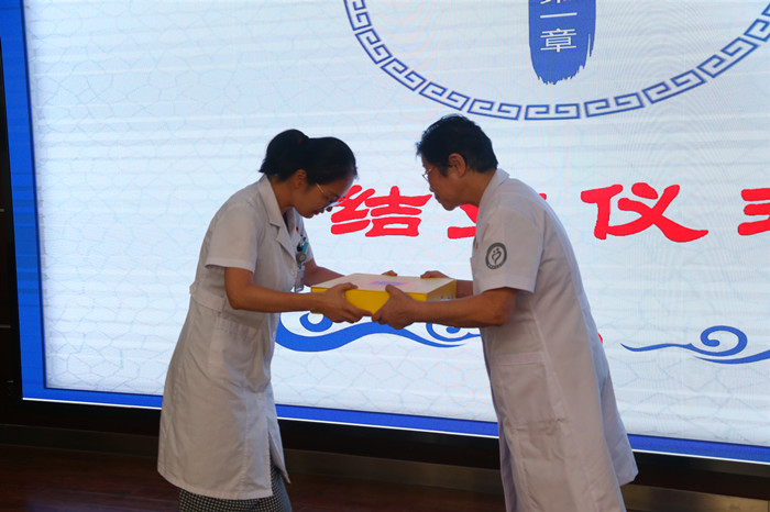承岐黃薪火,揚(yáng)中醫(yī)文化。7月9日,我院舉行了師承教育結(jié)業(yè)儀式暨下一輪名中醫(yī)師帶徒拜師儀式。院長葉金林,黨委委員徐禮鋒以及科教處、黨政綜合辦、門診辦、中醫(yī)科等相關(guān)部門負(fù)責(zé)人參加了儀式。