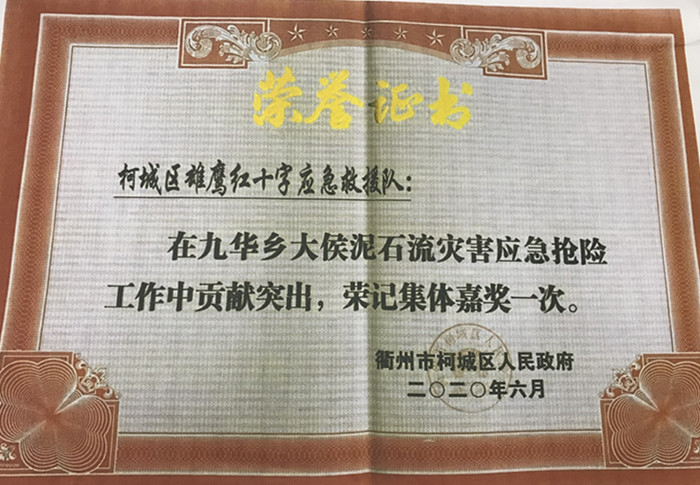 日前,從柯城區(qū)紅十字應急救援隊傳來好消息,來自我院的王丹丹、陳國芳作為應急救援隊隊員,積極參與九華鄉(xiāng)大侯泥石流應急搶險,獲得柯城區(qū)紅十字會表彰并榮獲柯城區(qū)政府頒發(fā)的榮譽證書。