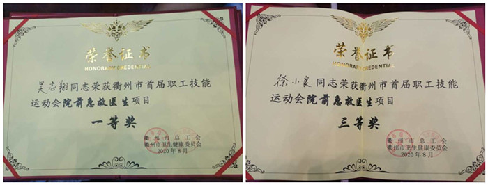 為進一步規(guī)范院前急救行為,全面提升我市院前醫(yī)療急救服務(wù)能力和服務(wù)質(zhì)量,8月28日,第五屆衢州市院前急救知識和操作技能競賽在衢州中專舉行。我院急診科醫(yī)生吳志翔、徐小良分別榮獲一等獎、三等獎,吳志翔還榮獲“衢州市金牌職工”榮譽稱號。