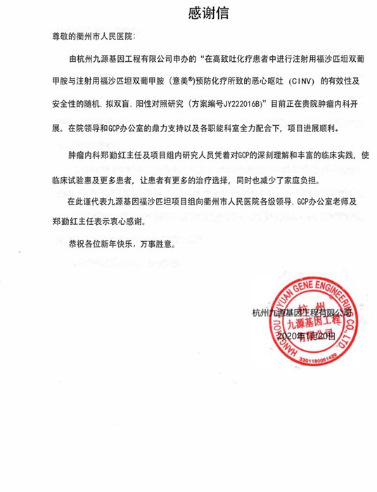 感謝信(致衢州市人民醫(yī)院) 文章來源: 作者: 點擊數(shù):5906 更新時間:2020-01-20 上一篇: 感謝信(致衢州市人民醫(yī)院) 下一篇: 感謝信(致張承亮、江菲菲醫(yī)師)