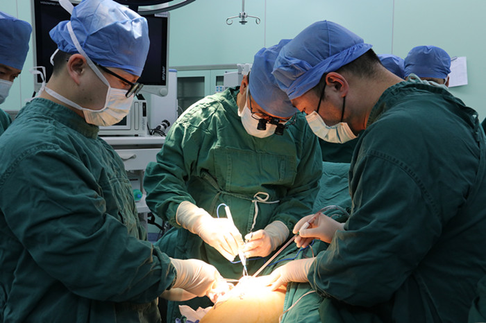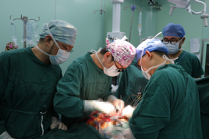 1月14日上午,王玨協(xié)同心胸外科周珉主任,帶領(lǐng)手術(shù)團隊為梁先生行全麻下 “補心”手術(shù)。