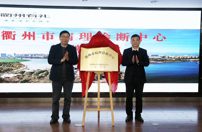1月22日下午,衢州市病理診斷中心簽約揭牌儀式在我院舉行,浙江省醫(yī)學(xué)會病理學(xué)分會主任委員滕曉東,市衛(wèi)健委黨委書記、主任廖利軍出席揭牌儀式并致辭。