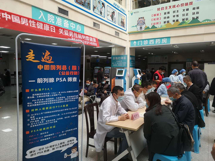 此外,泌尿外科醫(yī)護(hù)還為前來咨詢的患者,進(jìn)行免費的血壓測量和PSA測量,宣教相關(guān)注意事項。