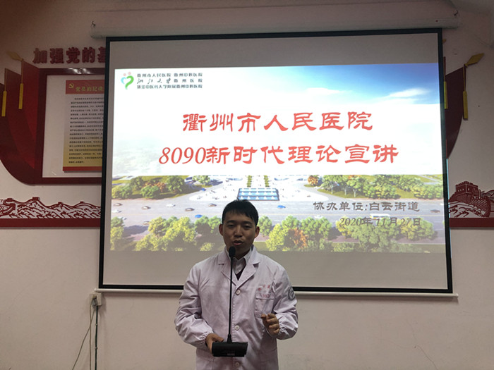 在白云社區(qū)的黨群服務中心,來自醫(yī)院內(nèi)分泌代謝病科、血管外科、感染科、中醫(yī)科的四位8090新時代理論宣講員用幽默風趣的方式,分別向現(xiàn)場的居民傳播低血糖、老寒腿、肺結(jié)核、咽喉炎等四種生活中常見病的預防與救治科普,現(xiàn)場高潮迭起,掌聲不斷。