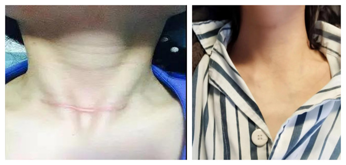 傳統(tǒng)手術術后頸部有明顯疤痕 腔鏡術后頸部無疤痕