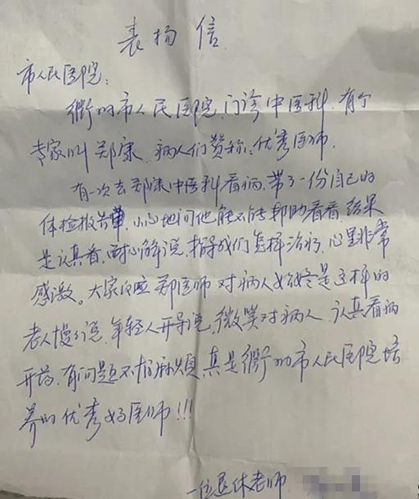 日前,我院收到一封給中醫(yī)科醫(yī)生鄭康的感謝信,字里行間洋溢著深深的感激。