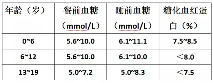 2型糖尿病兒童/青少年血糖控制標(biāo)準(zhǔn)為: