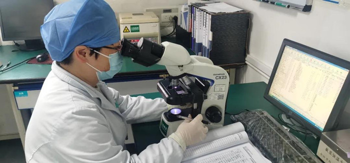 收到心包積液標本,檢驗科體液崗醫(yī)師對標本進行了常規(guī)計數(shù),發(fā)現(xiàn)細胞數(shù)目較大,達到了推片復檢的標準,便將標本交給了細胞形態(tài)崗的副主任技師鄭小金。