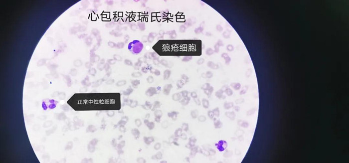 推片染色、鏡檢,結果令人詫異---“是狼瘡細胞!”原來,形成心包積液的原因在這里。