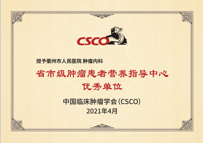 被授予“省市級腫瘤患者營養(yǎng)指導(dǎo)中心優(yōu)秀單位”