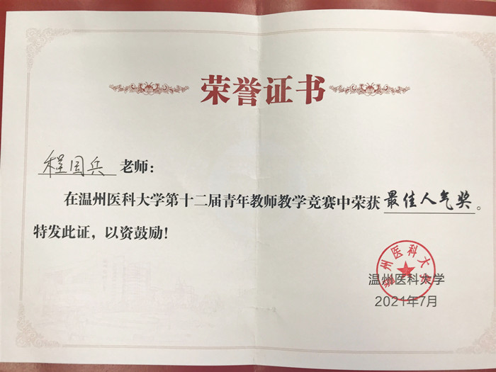 日前,從溫州醫(yī)科大學(xué)第十二屆青年教師教學(xué)競賽決賽中傳來好消息,我院血管外科青年醫(yī)師程國兵憑借出色的發(fā)揮獲得了二等獎(jiǎng)及最佳人氣獎(jiǎng)的好成績。