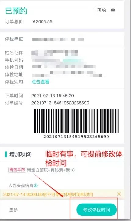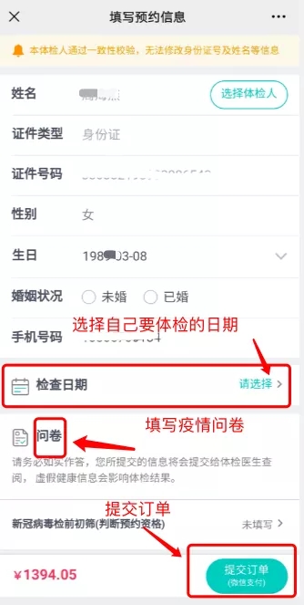 五、確認訂單,收到預(yù)約成功短信,按時到檢就可以啦!