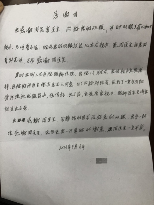感謝信(致中醫(yī)科周先富)