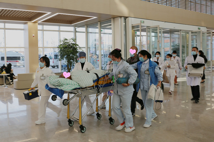 在閩江大道新院區(qū),醫(yī)務(wù)人員早早地等候接駁,將患者護(hù)送至相應(yīng)的病房,不到5個(gè)小時(shí)就完成了本次轉(zhuǎn)運(yùn)任務(wù)。