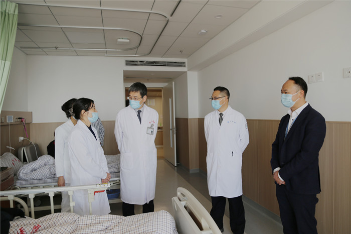院領(lǐng)導(dǎo)還來(lái)到住院部各病房看望慰問(wèn)搬遷到新院的患者,并為奔忙一個(gè)上午的醫(yī)護(hù)人員送上蛋糕。