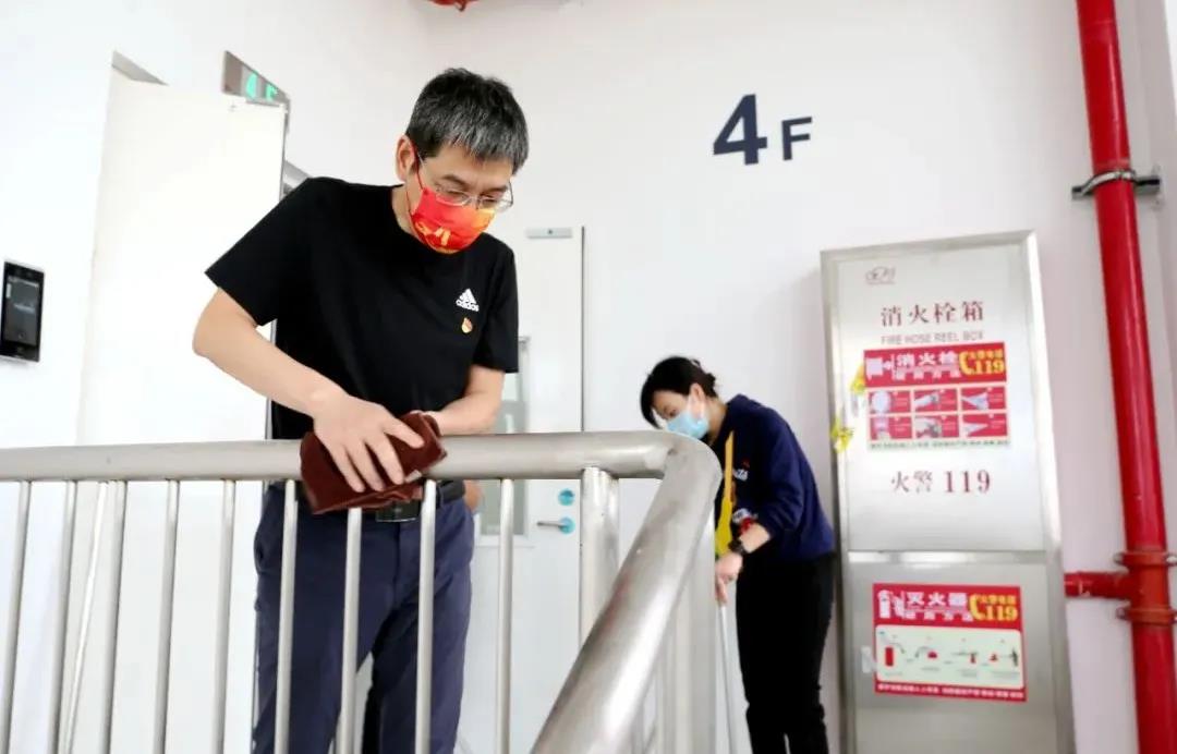 支部樹旗幟,黨員佩黨徽,讓黨旗飄揚(yáng)起來,讓黨員身份亮起來,把集中攻堅(jiān)氛圍營(yíng)造起來。在新院各樓道、天臺(tái)以及各種衛(wèi)生死角,不怕臟、不怕累的黨員干部成為了一道風(fēng)景線。