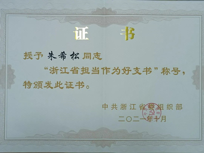 祝賀!我院朱希松主任榮獲“浙江省擔(dān)當(dāng)作為好支書”榮譽稱號