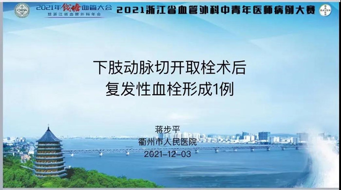 本次賽事邀請(qǐng)了浙江省各地市醫(yī)院的血管外科優(yōu)秀中青年醫(yī)生參加,在我院血管外科團(tuán)隊(duì)的共同努力下,蔣步平以《下肢動(dòng)脈切開取栓術(shù)后復(fù)發(fā)性血栓形成1例》為題進(jìn)行病例分享,清晰的思路獲得專家的一致好評(píng)。