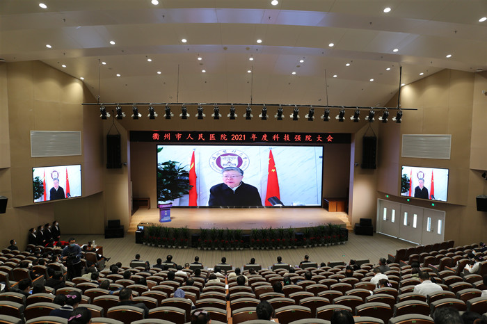 院長葉金林致開幕辭。他表示,2021年是我院發(fā)展歷程中具有里程碑意義的一年。站在新的平臺上,我院在科技工作方面取得了許多令人欣喜的成果,多項科技指標(biāo)取得突破。我院歷來重視科研創(chuàng)新和科研人才的培養(yǎng),科技強(qiáng)院大會的召開,表明了我院科技創(chuàng)新和人才培養(yǎng)的決心。同時,提出今后醫(yī)院的科技工作目標(biāo)。