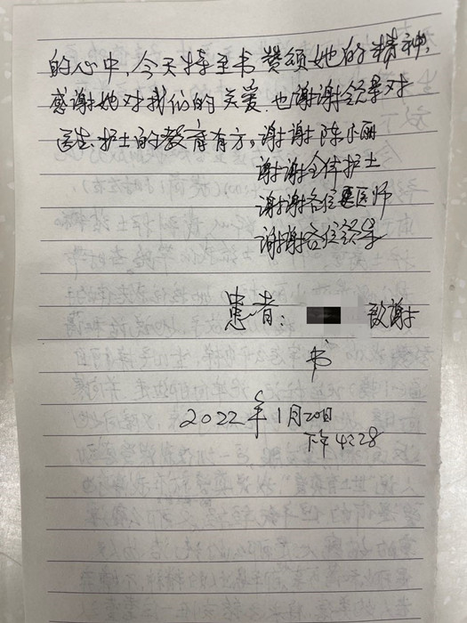 感謝信(致綜合病房二護士長陳小麗) 文章來源: 作者: 點擊數(shù):7771 更新時間:2022-01-24 上一篇: 感謝信(致骨科二主任王?。?/span> 下一篇: 感謝信(致產(chǎn)科陸晗倩)