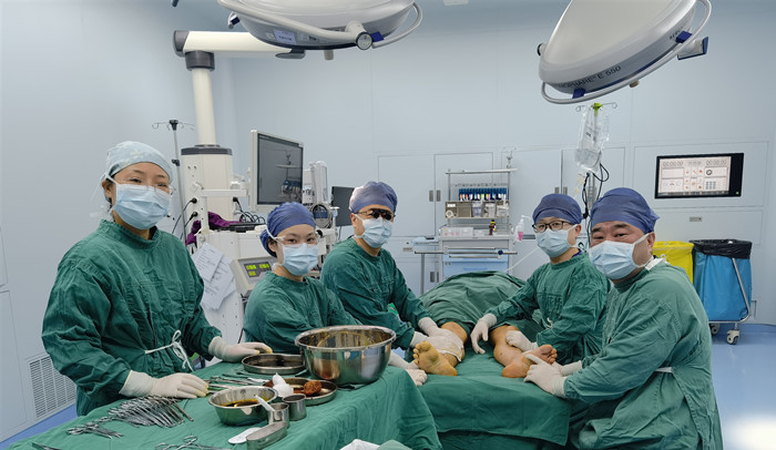 創(chuàng)面修復(fù)科王健團隊為“膚生工程”救助患者實施雙下肢難愈性創(chuàng)面清創(chuàng)、穿支皮瓣轉(zhuǎn)移覆蓋與植皮術(shù)。
