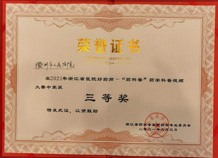 浙江省醫(yī)院好藥師——“藥科普”藥學科普視頻大賽三等獎