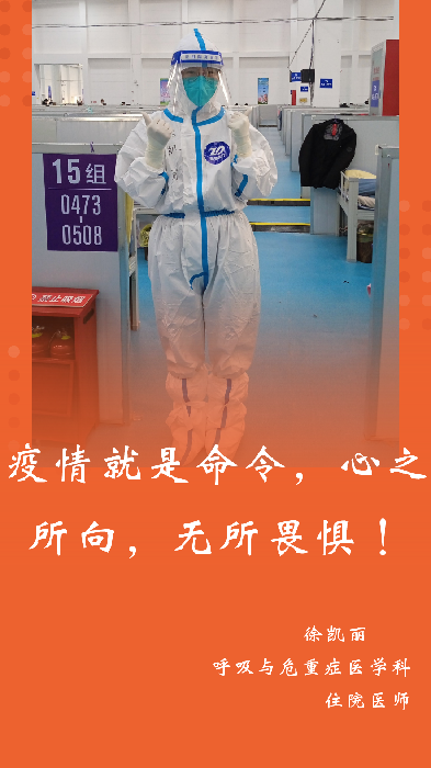 徐凱麗,樂觀開朗,技術過硬,負責方艙內(nèi)患者的診療工作,查房、換藥、心理疏導、協(xié)調(diào)物資,日常雖然忙碌,但依然信心滿滿。