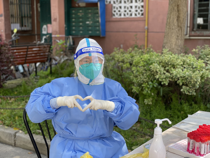 這是一支英雄的隊伍,4月3日馳援嘉興、4月7日轉(zhuǎn)戰(zhàn)上海。他們已連續(xù)工作24天。20多天來,他們?nèi)找辜娉?、奔波往返,嘉興海寧、上海長寧區(qū)、浦東區(qū)、閔行區(qū),活動室、健身廣場、物業(yè)辦公室門口、樓道里都有他們的身影。