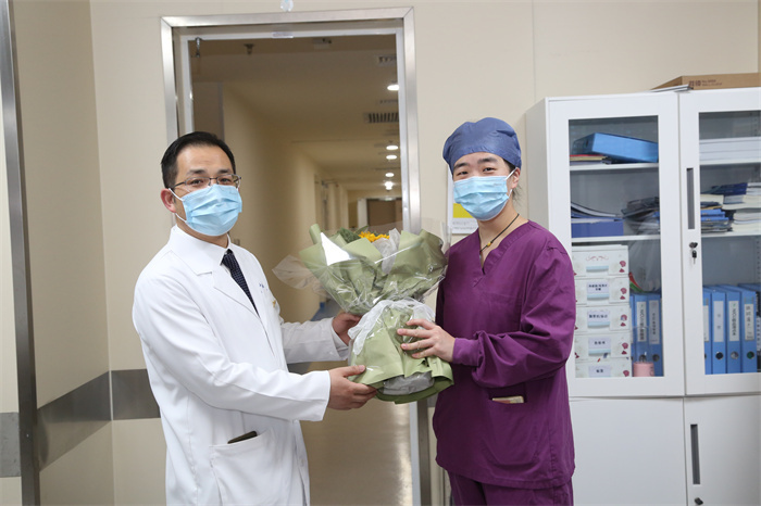 “節(jié)日快樂!辛苦了!”每到一處,院領(lǐng)導(dǎo)為護(hù)士們送上精心準(zhǔn)備的禮物,并對她們?nèi)σ愿白龊门R床護(hù)理工作表示感謝。