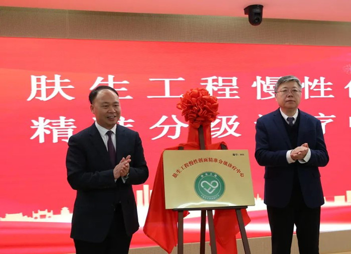 中國工程院院士、溫州醫(yī)科大學(xué)校長李校堃和我院院長葉金林分別為“膚生工程衢州站” “膚生工程慢性創(chuàng)面精準(zhǔn)分級(jí)診療中心”揭牌。
