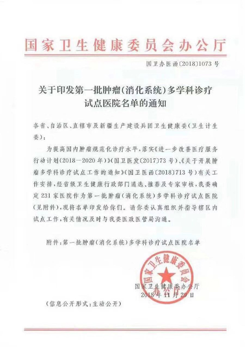 【喜訊】我院成功入選“國家衛(wèi)健委首批腫瘤(消化系統(tǒng))多學科綜合診療試點醫(yī)院”
