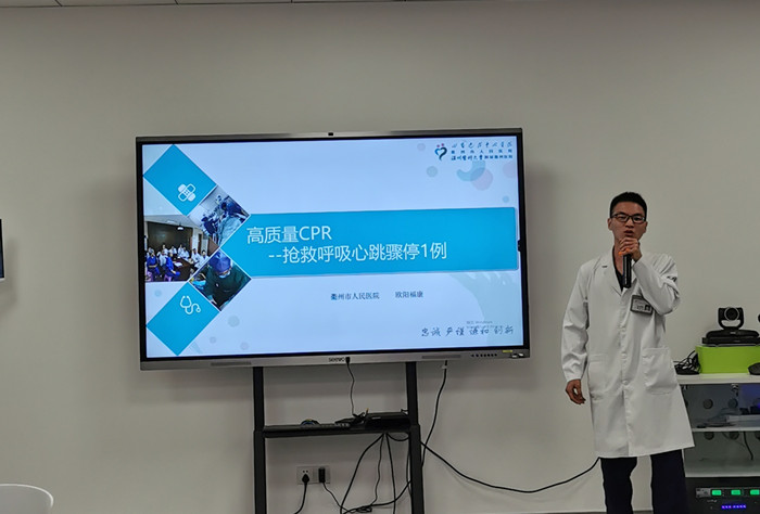 我院急診科醫(yī)師歐陽福康作題為《高質(zhì)量CPR搶救呼吸心跳驟?;颊摺返陌咐窒?。