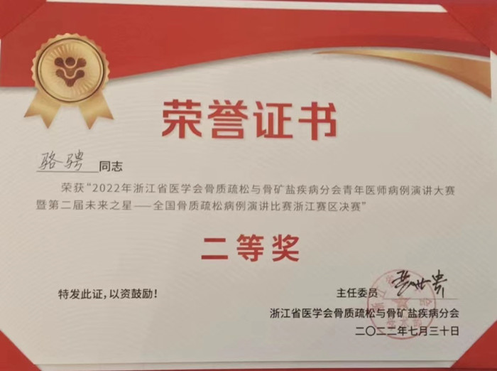 喜訊!我院內(nèi)分泌代謝病科青年醫(yī)師在浙江省骨質(zhì)疏松病例演講大賽中獲佳績