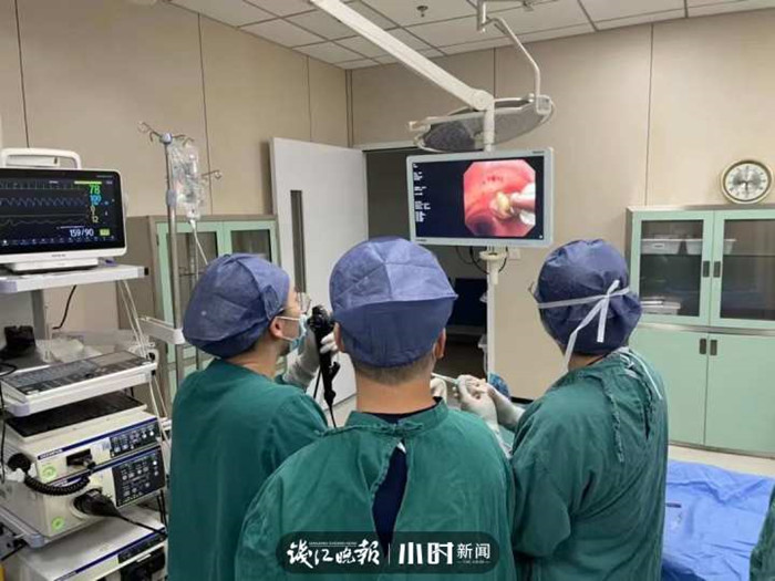 金旭如、盛建輝使用球囊導(dǎo)管和異物鉗,一拖一拽,異物被順利取出,整個(gè)手術(shù)僅18分鐘左右。