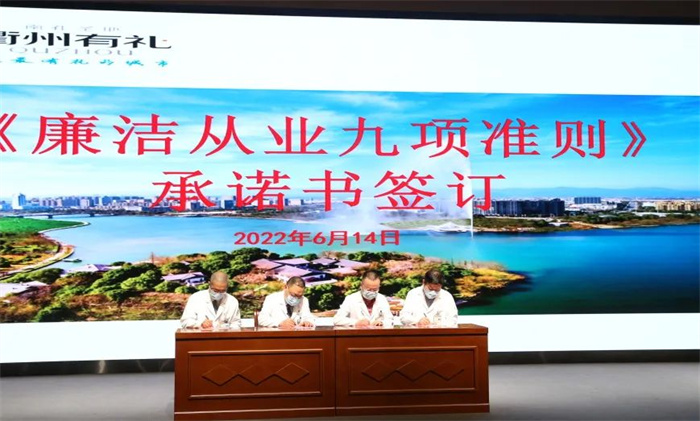 行政職能部門及臨床科室負(fù)責(zé)人代表上臺簽訂《廉潔從業(yè)九項準(zhǔn)則承諾書》,為依法、規(guī)范執(zhí)業(yè)莊重承諾。