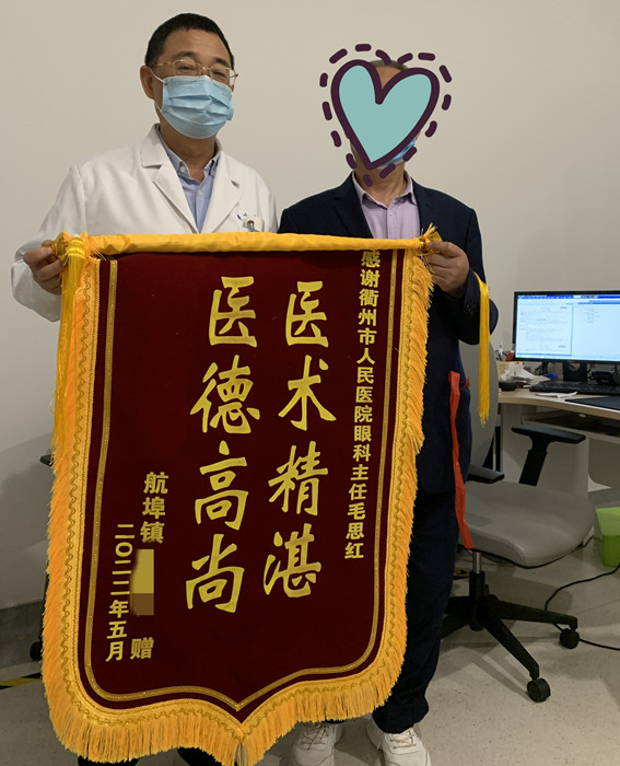 “現(xiàn)在看東西很清楚,謝謝你,毛醫(yī)生?!睆?fù)查這天,他特意向毛思紅醫(yī)生送來(lái)錦旗表示感謝。