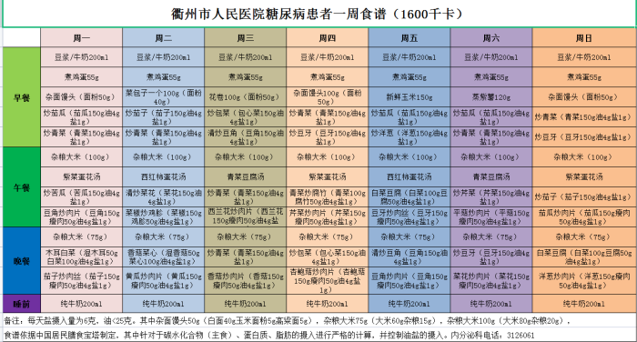 為了讓糖尿病患者,更直觀地了解每天身體所需攝入量,奉上糖尿病患者一周食譜。
