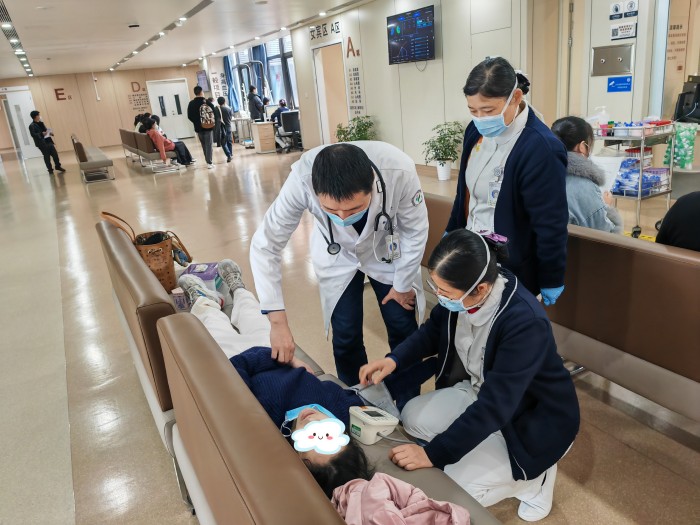 “你怎么了?”正在導檢的健康管理中心護士徐劍,察覺到不對勁,趕緊過去詢問。