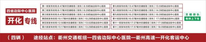 為方便各縣(市)區(qū)患者來院就診,近日,我院聯(lián)合市汽運集團,開通大潤發(fā)免費接送車,以及龍游縣、江山市、常山縣、開化縣四條途經(jīng)醫(yī)院的城際公交線路。