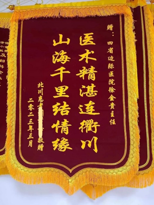日前,我院婦科徐金貴主任醫(yī)師收到一面來(lái)自北川的錦旗。今年三月,我院醫(yī)療專家一行來(lái)到北川羌族自治縣人民醫(yī)院開展醫(yī)療幫扶指導(dǎo),期間,徐金貴為當(dāng)?shù)?0多歲的劉奶奶解決了困擾多年的子宮脫垂。得知北川羌族自治縣人民醫(yī)院專家將來(lái)我院參訪后,劉奶奶特地制作錦旗點(diǎn)贊援川醫(yī)療專家高超技術(shù)和兩地深厚情誼。