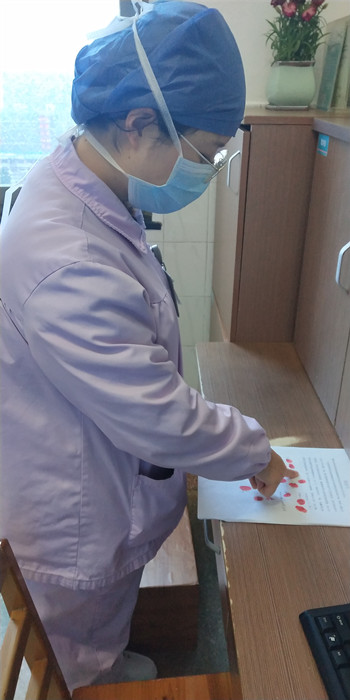 “沒有想到請戰(zhàn)書下發(fā)當(dāng)天,科室里所有人都報了名,摁了拇指印,我很感動……”面對洶涌而至的疫情,我院的一封摁滿紅手印的請戰(zhàn)書成為一道最美的風(fēng)景。